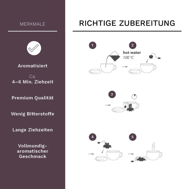 Creano ErblühTeelini Black Tea este o noutate revolutionara in lumea ceaiurilor: blooming tea (flori de ceai) portionate special pentru cana, cu fir de bumbac integrat, usor de manevrat ca un pliculet clasic de ceai.