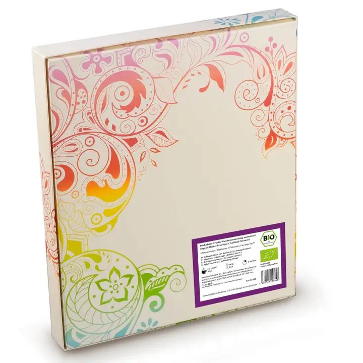 Organic Tea Blend 27er Gift Set Creano este un set cadou rafinat ce reuneste noua sortimente exclusive de ceaiuri organice, fiecare cu o identitate aromatica proprie: Strawberry Mint, Red Fruit, Sunny Herbs, Raspberry Echinacea, Herb Power, Berry Stinging Nettle, Pineapple Lime, Apple Mandarin si Fruity Orange. Fiecare plic contine un blend unic de plante, fructe si condimente atent selectionate, unele imbogatite cu arome fructate naturale, pentru o experienta gustativa moderna si memorabila.