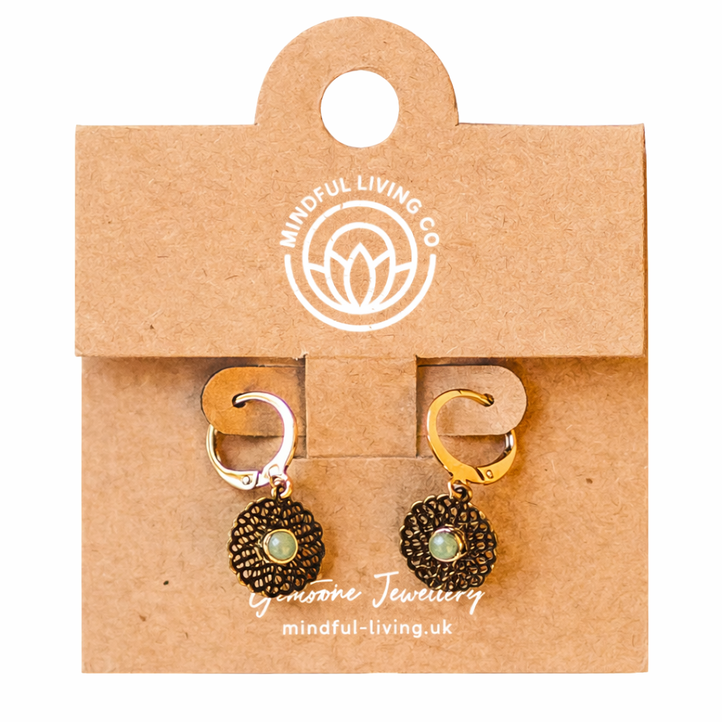 Sunt creati pentru a imbina simbolismul mandalei cu eleganta unui accesoriu usor de purtat zilnic. Designul pune in valoare un charm din cristal natural, atent slefuit si integrat intr-un cadru inspirat din forma mandalei, placat cu aur de 18K pentru un efect vizual armonios si echilibrat.