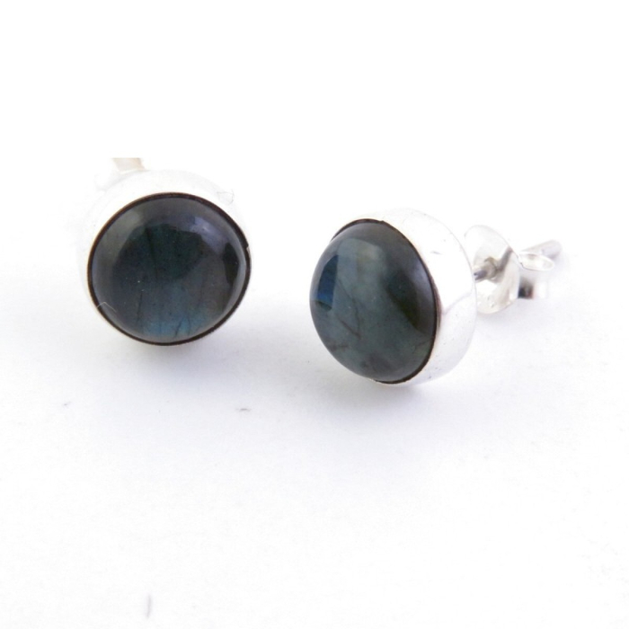 Cercei tip stud realizati din argint 925, decorati cu piatra naturala de labradorit, cu diametrul de 9 mm. Sistem de inchidere cu fluture, sigur si confortabil. Produs fabricat in India.