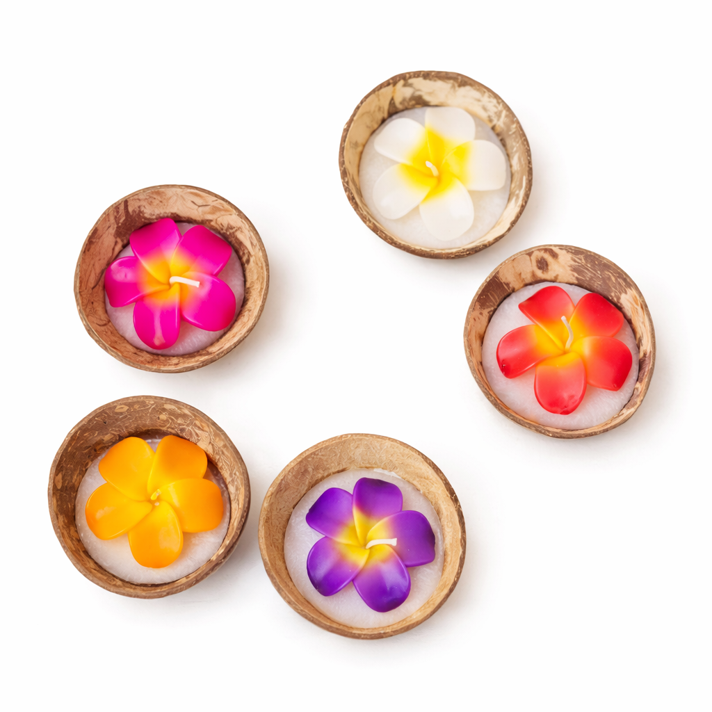 Floarea este inspirata de frangipani, o planta tropicala asociata cu ideea de inceputuri noi, puritate si energie pozitiva. Din acest motiv, astfel de lumanari sunt adesea oferite ca dar simbolic pentru noroc, noi etape sau momente speciale.