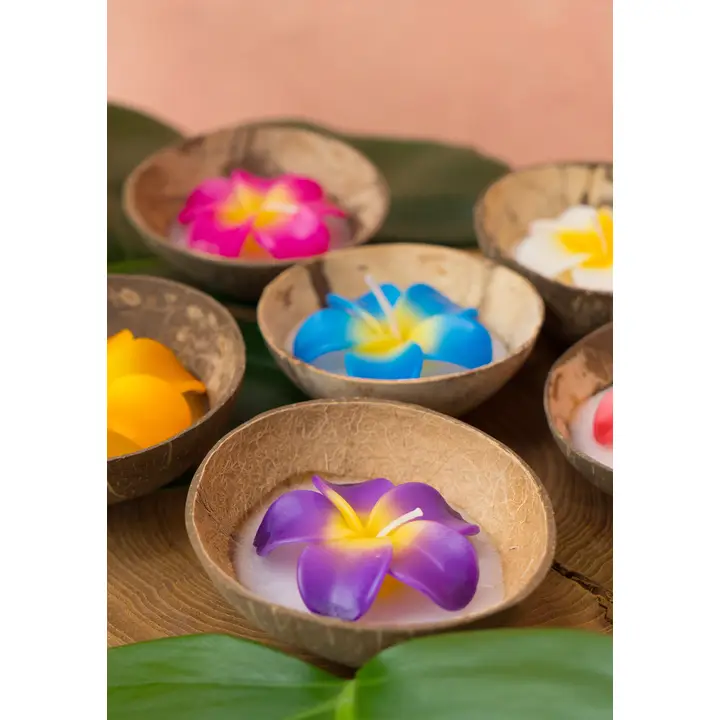 Aceasta lumanare decorativa in forma de floare este asezata intr-o coaja naturala de cocos, creand un obiect decorativ cu aspect exotic si natural. Culorile vibrante, precum roz, alb, rosu, albastru, mov sau portocaliu, transforma fiecare piesa intr-un accent decorativ plin de viata.
