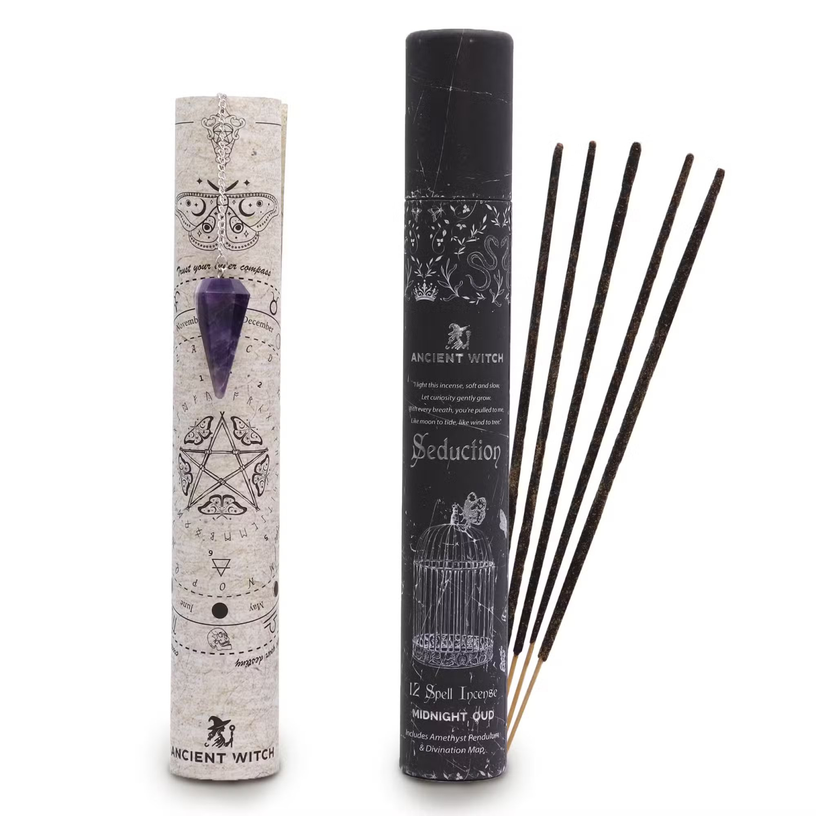 Fiecare tub contine aproximativ 12 betisoare parfumate, un pendul din ametist si o harta de divinatie, oferind un echilibru intre experienta senzoriala si explorarea intuitiva.