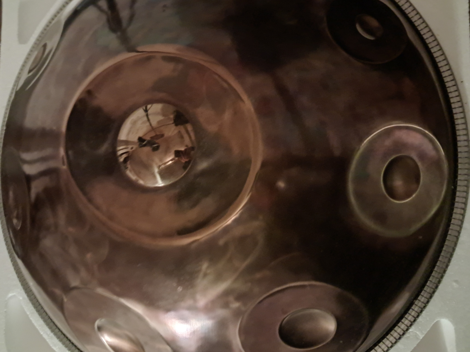 Stati confortabil pe podea sau pe un scaun. Tineti handpan-ul pe coapse sau in poala, asigurandu-va ca orificiul de rezonanta situat pe partea inferioara a handpan-ului este liber si neacoperit. De asemenea, puteti folosi un suport special pentru handpan-uri.
