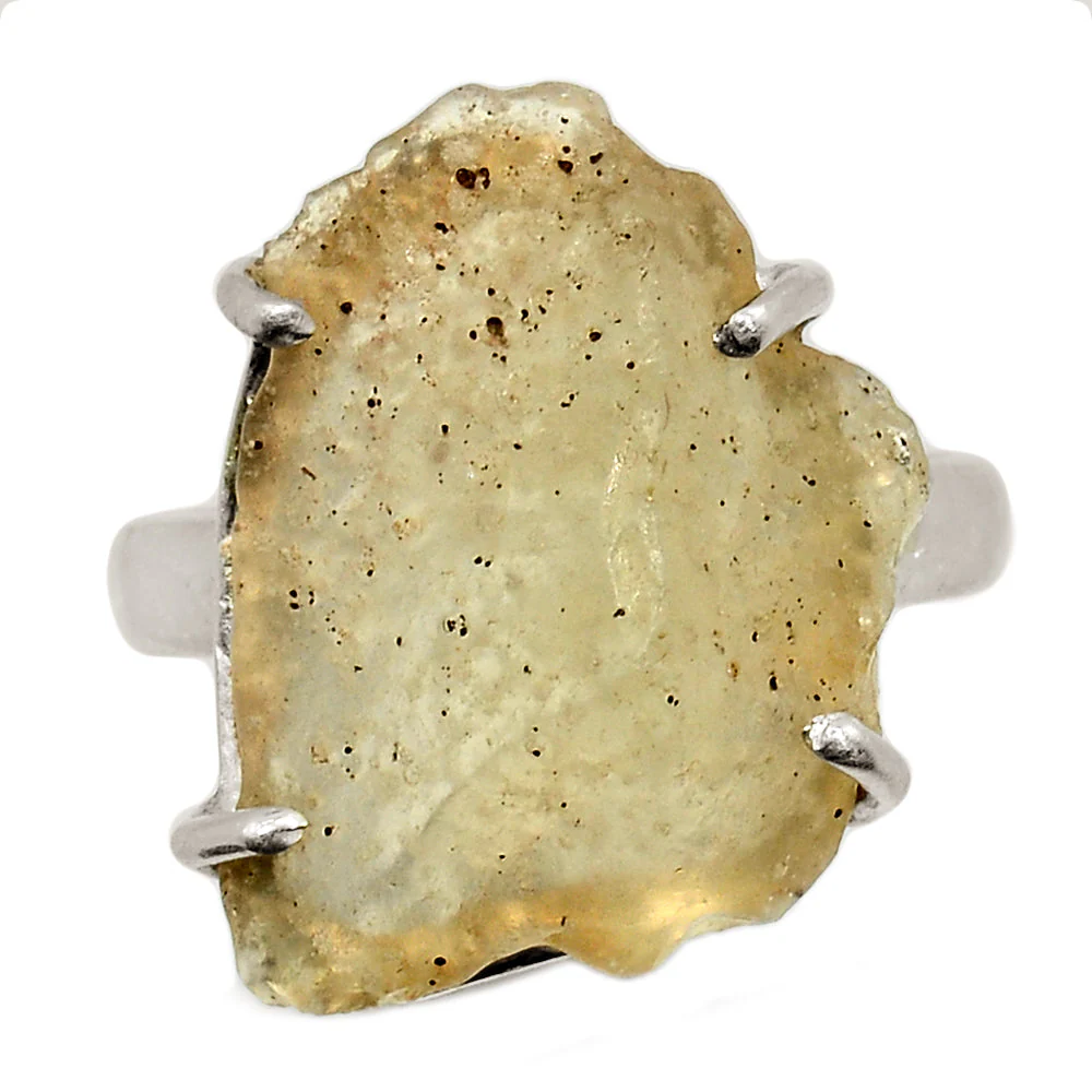 Libyan Desert Glass este asociata cu claritatea mentala, vointa personala si transformarea interioara, fiind corelata cu chakra plexului solar. Montura tip claw pune in valoare caracterul brut al pietrei, rezultand o bijuterie cu prezenta puternica si semnificatie autentica.