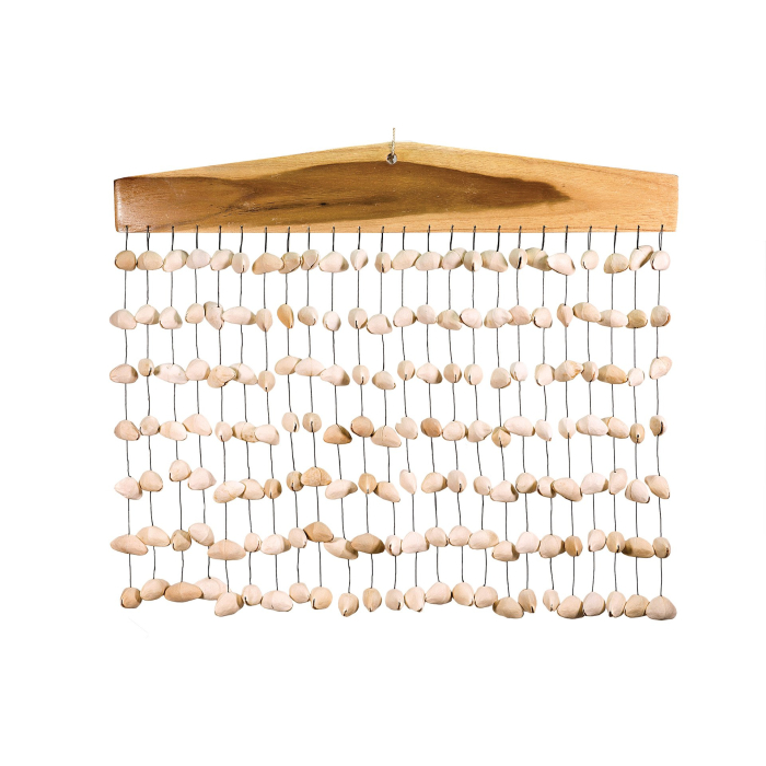 Bar Chime cu Nuci Chacha este un instrument muzical cu aspect exotic si sunet natural, ideal pentru relaxare, meditatie sau ambientarea unui spatiu. Este realizat din 24 de siruri, fiecare prevazut cu cate 7 nuci Chacha suspendate pe fire rezistente si montate pe o bara din lemn.