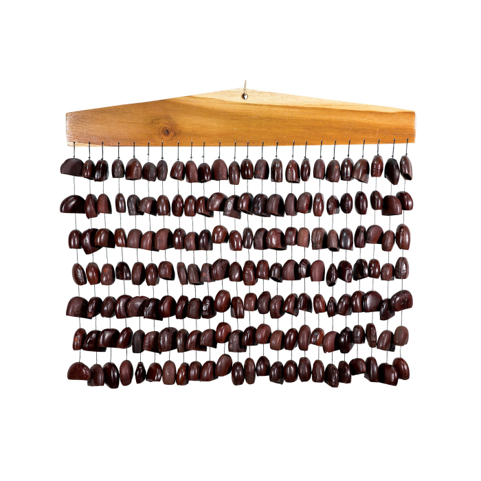 Bar Chime cu Nuci Juju este un instrument muzical decorativ si relaxant, realizat din materiale naturale si apreciat pentru sunetul sau delicat si armonios. Acest model este compus din 24 de siruri, fiecare prevazut cu cate 7 nuci Juju atent fixate pe fire rezistente.