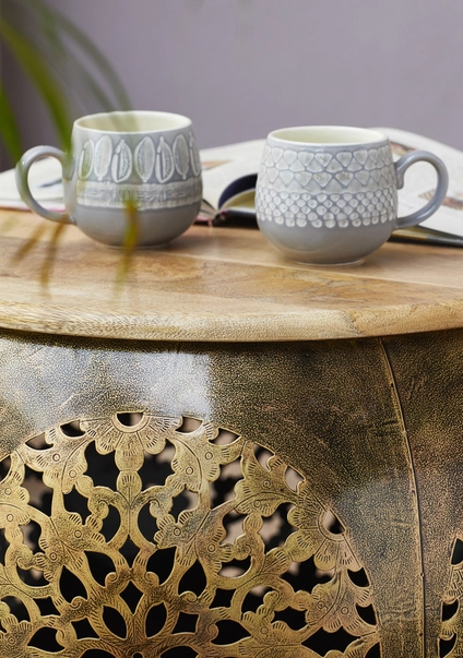 Masuta Nanda impresioneaza prin contrastul dintre baza rotunda din metal industrial si blatul superior din lemn de mango. Designul decupat al bazei nu este doar decorativ, ci evidentiaza armonia dintre texturile naturale si aspectul modern-industrial.