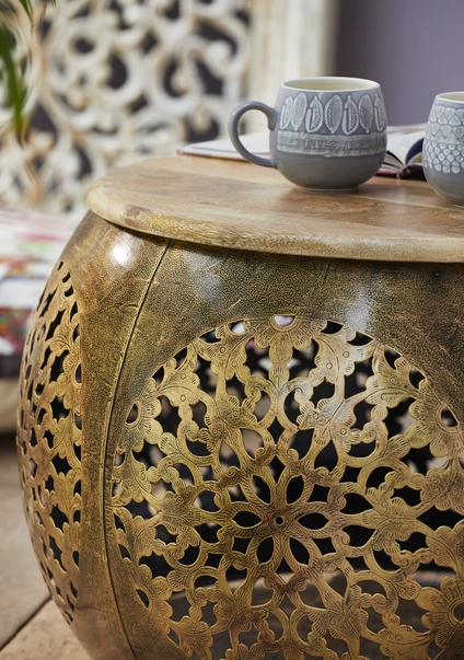 Masuta Nanda din Metal Decupat cu Blat din Lemn