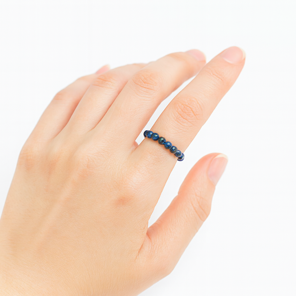 Inelul elastic cu margele din Lapis Lazuli aduce o nota de eleganta naturala si este potrivit pentru orice stil. Realizat din pietre semipretioase autentice, fiecare margea scoate in evidenta nuantele albastre profunde si venaturile aurii de pirita specifice acestui cristal.