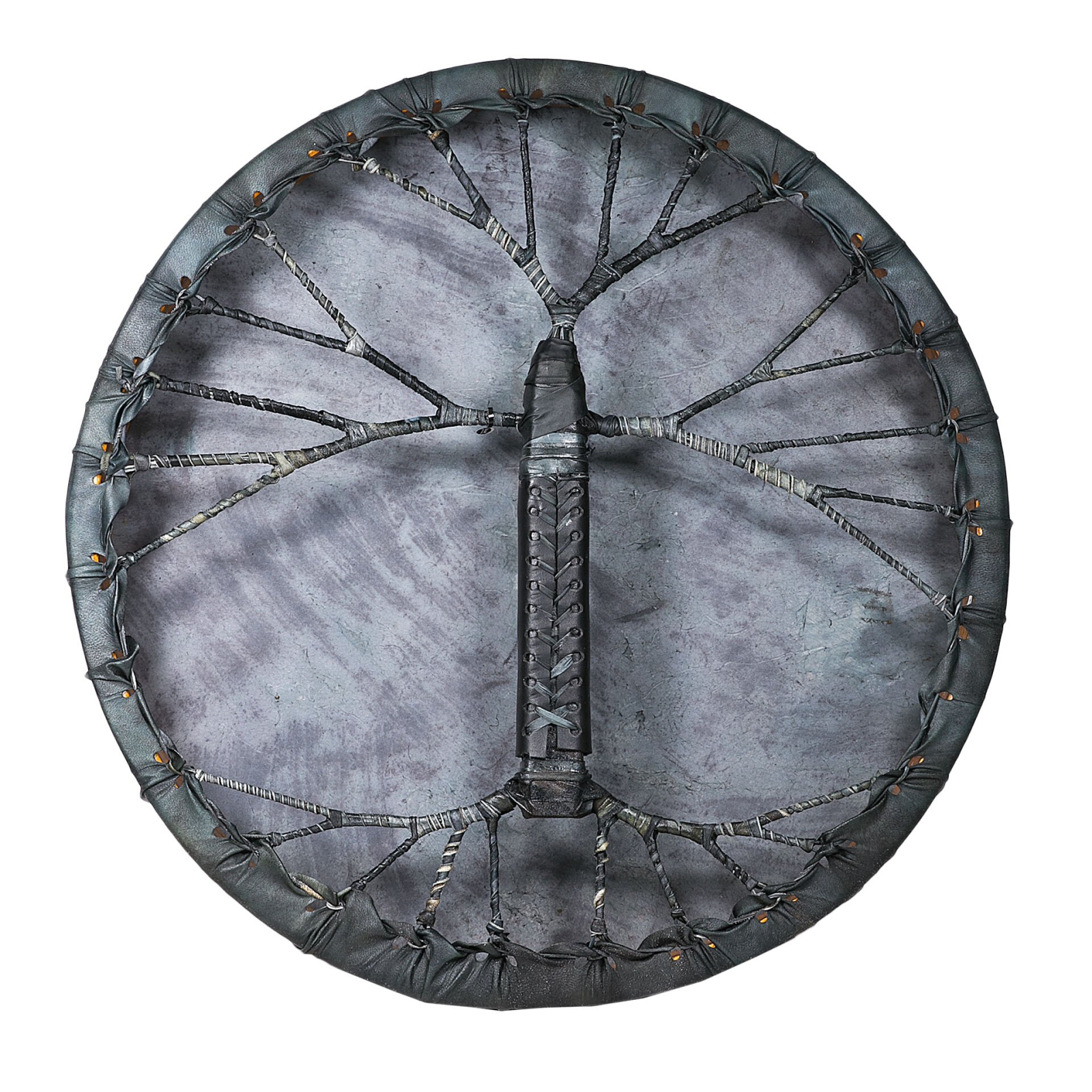 Toba samanica rotunda gri, piele de capra, 50 cm, cu ciocanel inclus